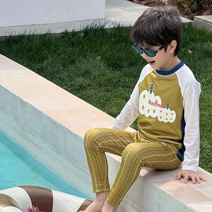 男の子と子供用長袖日焼け止め水着漫画プリントツーピーストレンディなメンズ水着夏の新しいスタイルのビーチでの休暇