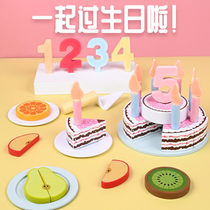 模擬誕生日ケーキ木製ままごとペストリーベビーデジタル認知実践切断モデルおもちゃテーブル