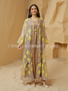 Musilin 越境ホットセール中東レディースファッションスパンコール金縁刺繍ガーゼローブ 2 点セット独立したステーション