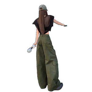 军绿色弯刀裤女2025年秋季新款高腰宽松显瘦美式工装阔腿休闲裤子