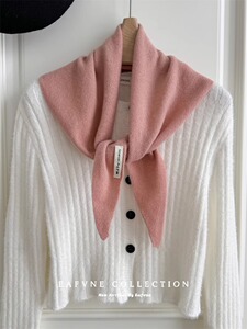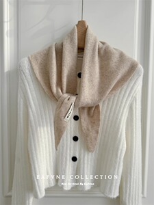简约层次感100%澳洲纯羊毛针织三角巾女头巾围巾秋冬保暖披肩休闲