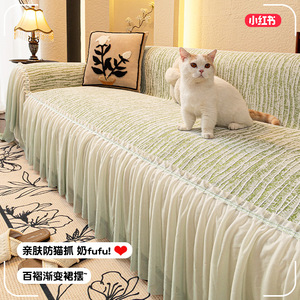 フレンチグラデーションスカートソファカバー布オールシーズン対応2025年新作ソファタオルフルカバー猫傷防止