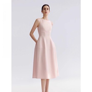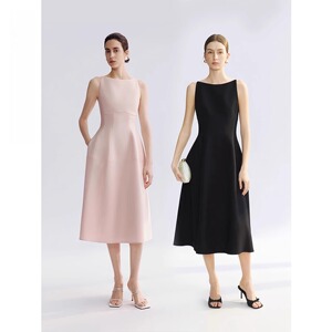 Lang シリーズ 2025 新しい夏のエレガントなワンラインネックノースリーブドレス女性のハイエンドフレンチスリムウエストスカート