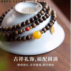 女士沉香手串三圈叠戴天然蜜蜡南红奇楠手链小米珠檀木多圈弥楠