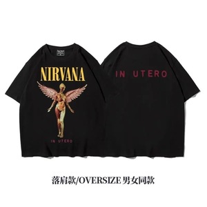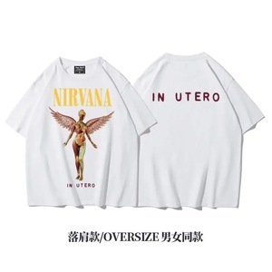 アミカーキ サマー速乾 アメリカンオフショルダー ヘビーウェイト ルーズ ロック オーバーサイズ 半袖 Tシャツ