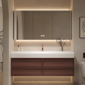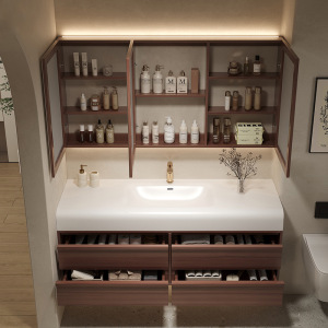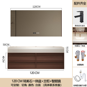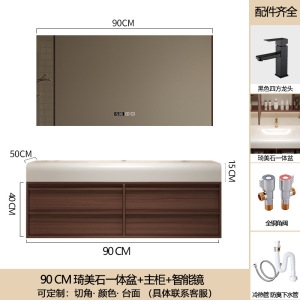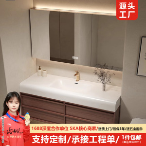 中古风琦美石一体盆卫生间浴室柜洗漱池洗手脸盆组合智能收纳卫浴