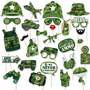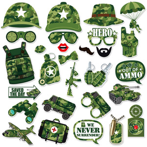 国境を越えた軍事テーマの写真小道具誕生日パーティーの装飾迷彩軍事ハンドヘルド面白い自撮り小道具