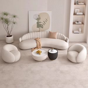 ライトラグジュアリークリームスタイルの曲面ソファビューティーサロンレセプション休憩組み合わせ小さなアパートB&Bアパートリビングルームインターネットセレブモデル