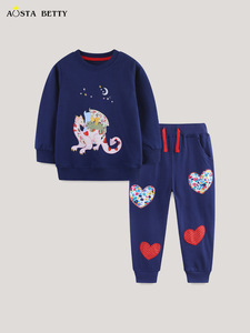 秋の新女の子スーツヨーロッパとアメリカンスタイルのニット綿ラウンドネック長袖子供トレーナーファッション愛子供のスポーツパンツ