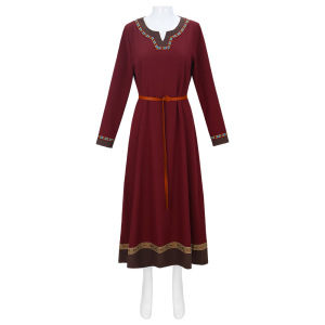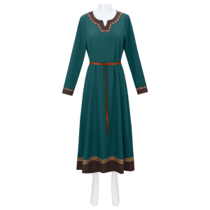 女性中世バイキングドレスハロウィンルネサンス田園四方ストレッチエスニックスタイルミディドレス