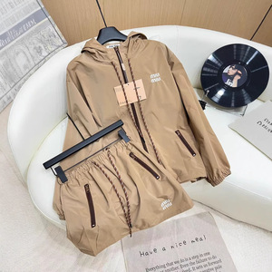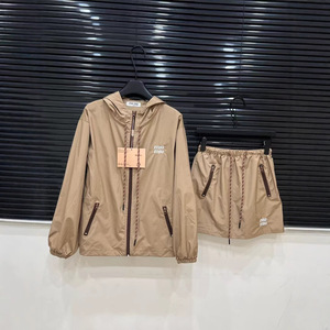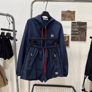 MIU薄款防晒抽绳连帽上衣外套+短裤/半裙套装松紧百搭厂家批发