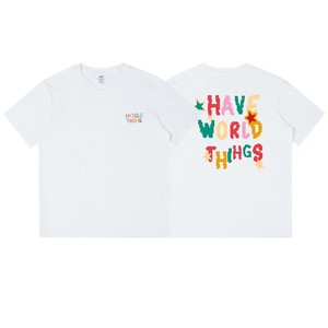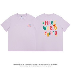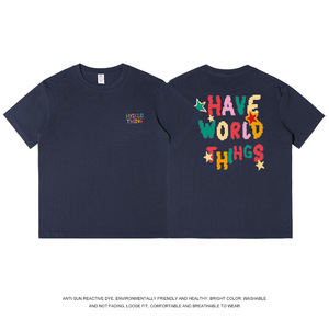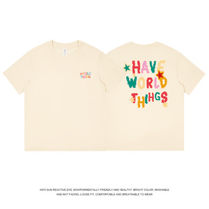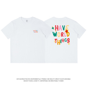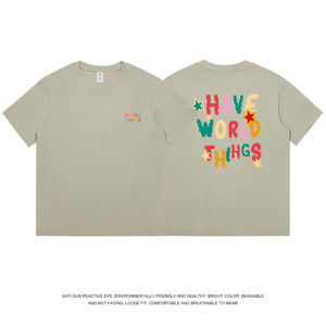 メンズヘビーウェイト純綿ストリート系ヒップホップ半袖Tシャツ、カラフルな文字プリント入り、夏向け、個性的なトップス、レディースインス
