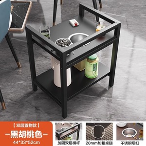 【胡桃色】麻将桌边几-双层+烟灰缸+轮子