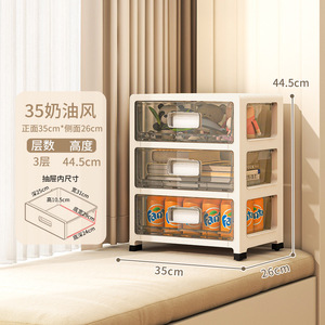 35面ワイドミルクカラー角丸収納キャビネット-3段