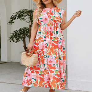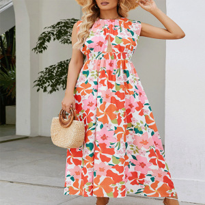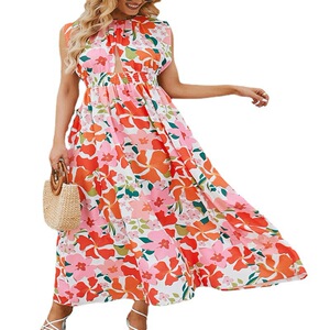 夏の新しいヨーロッパとアメリカの服アマゾン AliExpress カジュアルウエストホルターネックドレスノースリーブプリントロングスカート