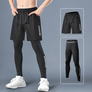アイスシルク速乾性タイツメンズ夏薄い日焼け止めベースレイヤーランニングコンプレッションパンツ高弾性ヨガスポーツパンツ