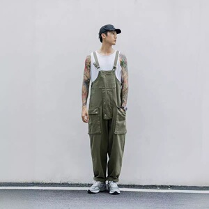 クロスボーダーアメリカのトレンドブランドオーバーオールメンズカジュアルアミカーキカジュアルオーバーオールルーズストレートサスペンダーパンツ
