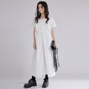 Zhongchuang Rizhen ニッチデザインスタンドアッププリーツ V ネックルーズフレンチドレス女性の 2025 夏のハイエンドロングスカート