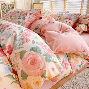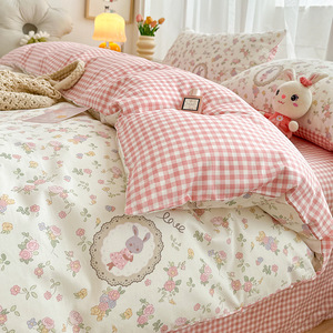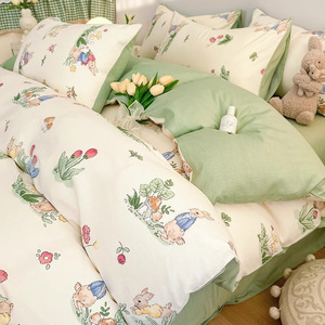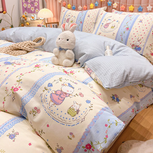 かわいいウサギの純綿ベッド4点セット、綿子供用女の子プリンセス寝具3点セット、ベッドシーツ、掛け布団カバー