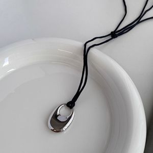韓国ブロガーと同じシルバー黒ロープペンダントロングネックレスレディースニッチインシンプルで多用途なハイエンドアクセサリー