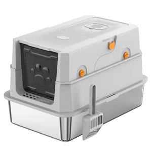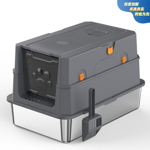 ステンレス製猫トイレ、特大完全半密閉型猫トイレ、防臭・防砂子猫トイレ、猫用品