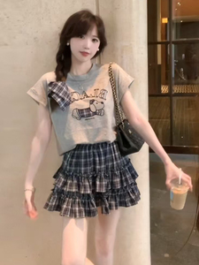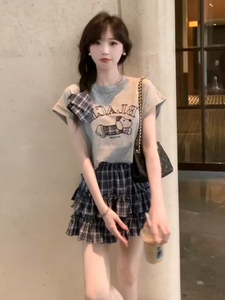 格纹短裙 【夏日松弛感套装/韩系时髦感/小香风/洋气减龄显瘦/小裙子套装/小个子/可爱甜妹/气质女神
