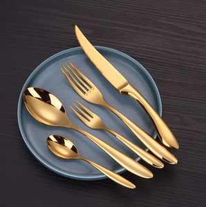 卸売 304 ステンレス鋼ゴールデンナイフフォークスプーンホテルエレガントな西洋ステーキナイフフォークデザートティースプーン西洋食器