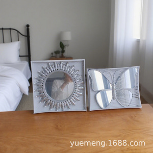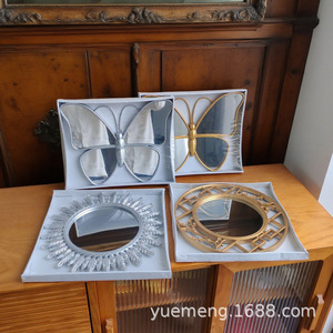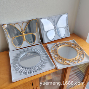 レトロなヨーロッパの寝室の化粧鏡エンボス中空ゴールデン実用的なミラーモデルルームの背景の壁の装飾吊りミラー