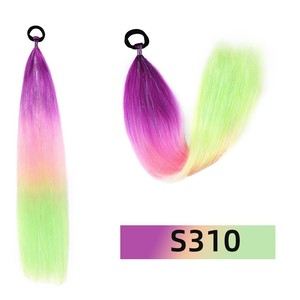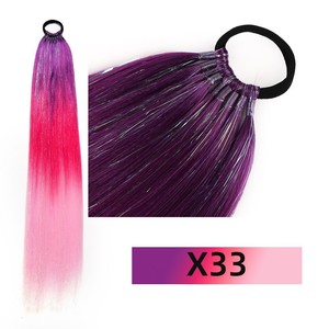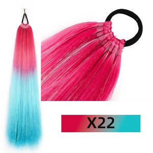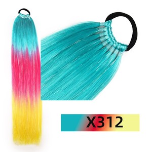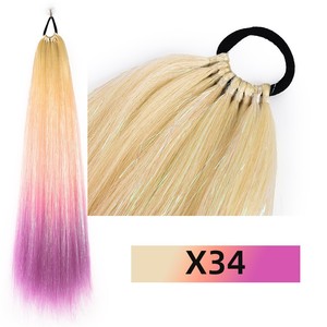 カラーレーザーフィラメントEZドレッドヘアゴールドとシルバーのフィラメントロングポニーテールヘアエクステンションカラフルなグラデーションドレッドヘアウィッグ