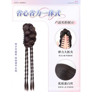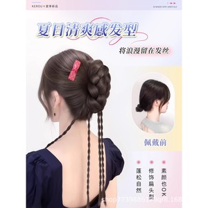 假发辫子女自然慵懒感花苞头假发抓夹仿真新中式长辫子发饰假马尾