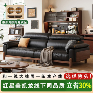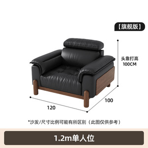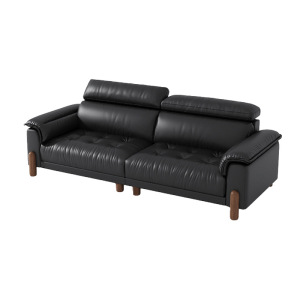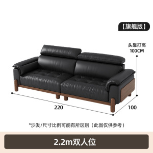 ウォールナットカラーのアンティークスタイルのブラックレザーソファ調節可能なヘッドレスト小さなリビングルームホームダブルレザーソファ