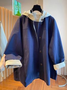 春秋季大码撞色拼接风衣2025新款英伦风设计高级感宽松遮肉外套