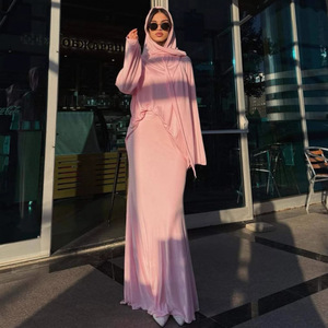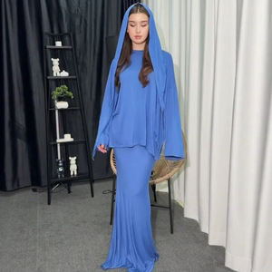 2025年秋ヨーロッパ、アメリカ、中東のゆったり、快適、多用途通勤長袖トップス、ロングスカート、三角スカーフ3点セット