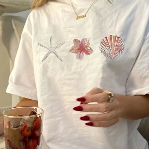 レディース コットン スターフィッシュ & シーシェル プリント T シャツ - カジュアル C