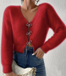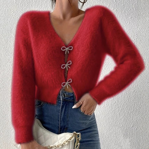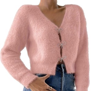 国境を越えた外国貿易秋と冬の新しい模造ミンクベルベットニットカーディガンヨーロッパとアメリカのファッションリボンシングルブレストセータージャケット