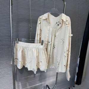 2025年初秋超人気サマースーツレディースデザイン中空刺繍日焼け止めシャツとショーツ2点セット