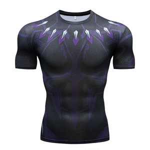 ヨーロッパとアメリカのアベンジャーズ 3D Tシャツスポーツタイツメンズ吸汗性フィットネスバスケットボールユニフォームメンズ半袖弾性