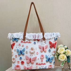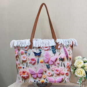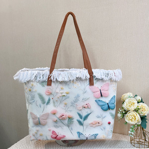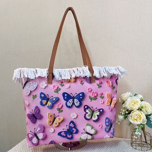 跨境彩色蝴蝶大容量手提袋涤纶时尚女士斜挎包便携大号超市购物袋