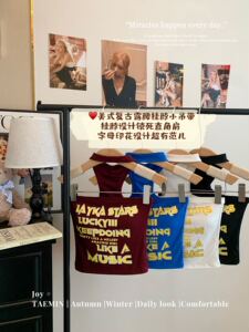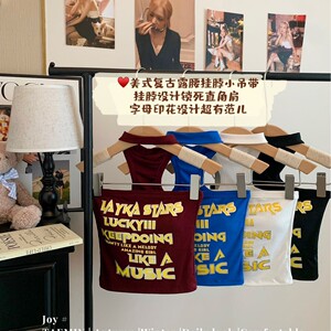 1932 # アメリカンレトロレタープリントホットガールキャミソールレディース新作インナーとアウタースリムフィットトップ