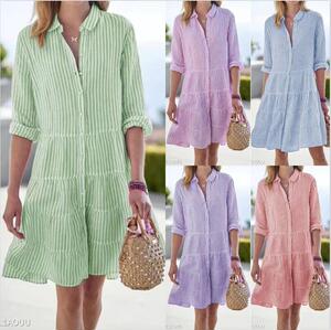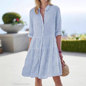 Amazon独立系サイトクロスボーダーヨーロッパとアメリカの服2025秋長袖レディースストライプシャツドレス