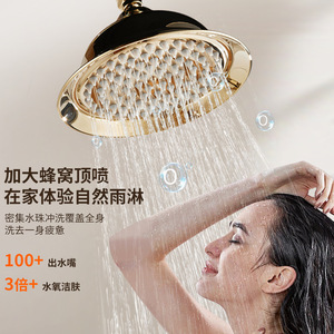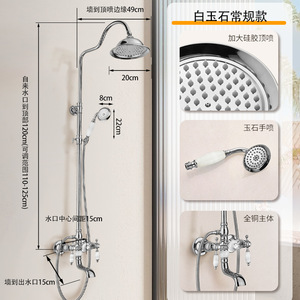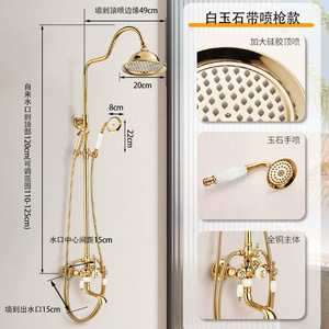 フレンチレトロ銅ゴールデンダブルハンドル白翡翠蛇口シャワーシャワーセットリフティングシャワー温水と冷水の蛇口