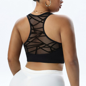 メッシュレイヤードスポーツヨガブラ、美しい背中のスポーツブラ、ランニング耐衝撃プッシュアップフィットネス高強度ベスト