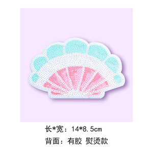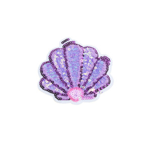 新しい漫画風貝殻スパンコール刺繍パッチ、海洋生物をテーマにした布パッチ、服の穴を補修するパッチ