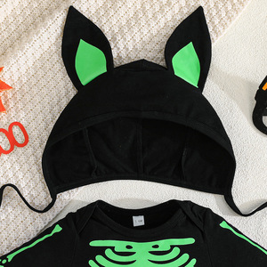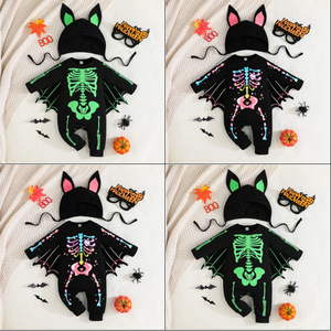 2025 外国貿易新製品ベビーロングレッグハロウィンベビーバットスタイルジャンプスーツ + 帽子