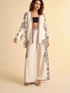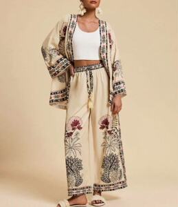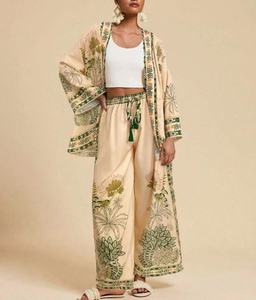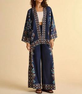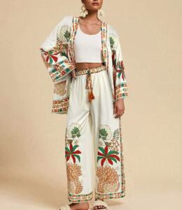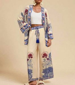 国境を越えた貿易 2025 ヨーロッパとアメリカの秋の新ファッションルーズカーディガン長袖プリントワイドレッグパンツスーツ