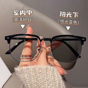 タイクールブラックウォリアーハンサムハーフフレームメガネエレガントな科学技術男性レトロ変色近視メガネ抗青色光フラットメガネ