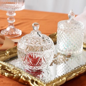 ガラス製キャンディカップ キャンディジャー 中型 小型 食品保存瓶 クリスタルスナック保存瓶 蓋付き 密閉瓶