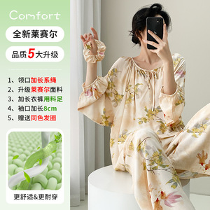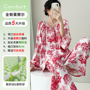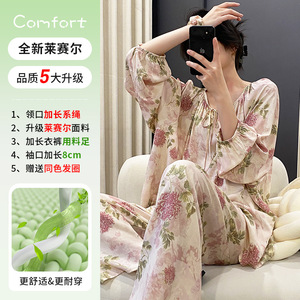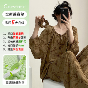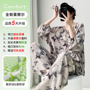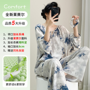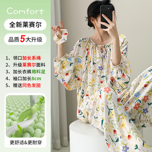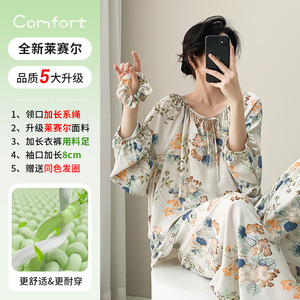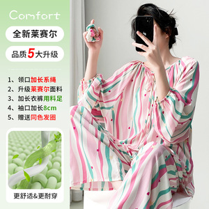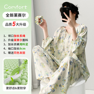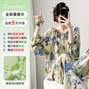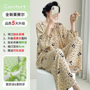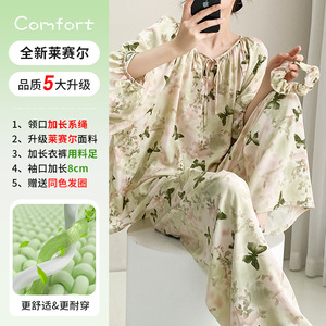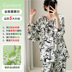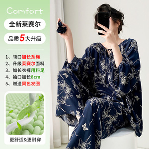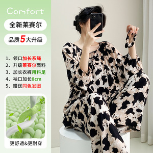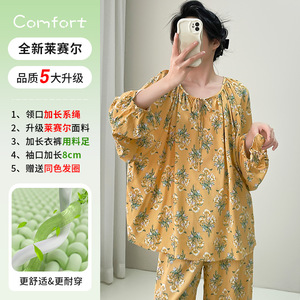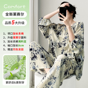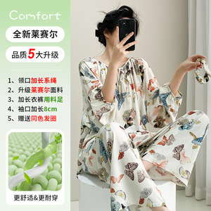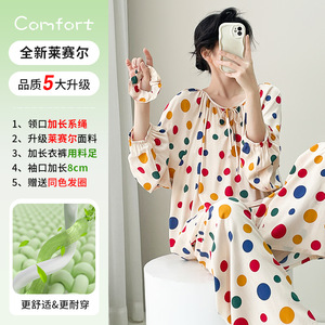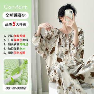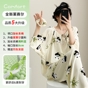 リヨセルパジャマ女性のための 2025 アップグレードホットスタイル綿シルク春と夏のホーム服人工綿ルーズ薄型セット
