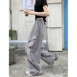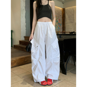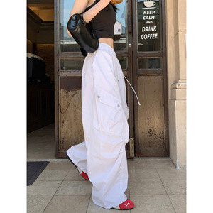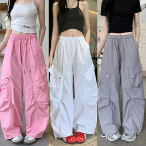 2025 アメリカンデザインピンクオーバーオール女性の夏のハイウエストデザインルーズワイドレッグパンツ巾着フロアモップパンツ