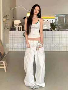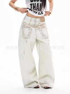 2025年夏新作アメリカンウォッシュホワイトデザインアンチピアス刺繍デニムパンツハイストリート万能パンツユニセックス